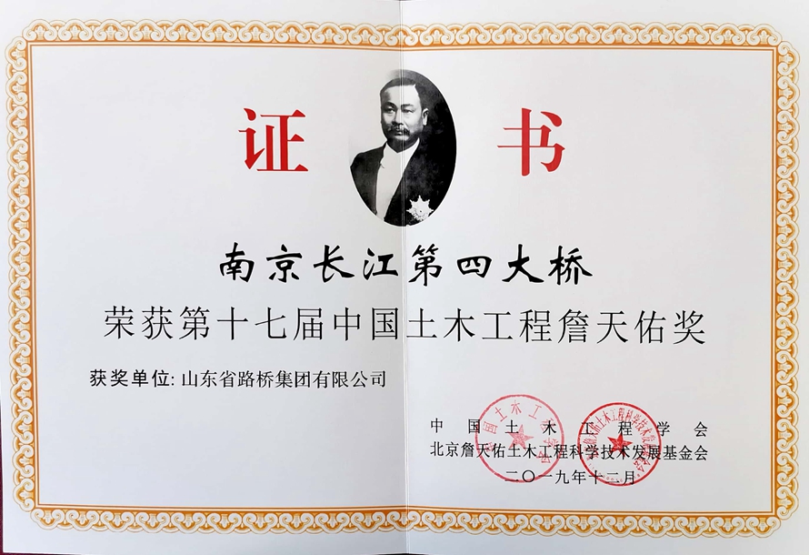 9月22日,在中國土木工程學(xué)會(huì)2020年學(xué)術(shù)年會(huì)暨第十七屆中國土木工程詹天佑獎(jiǎng)?lì)C獎(jiǎng)大會(huì)上,山東路橋參建的南京長(zhǎng)江第四大橋喜獲詹天佑獎(jiǎng),這是山東路橋第二次獲此殊榮。