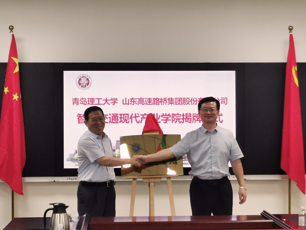 9月26日,由公司與青島理工大學共同建設(shè)的智慧交通現(xiàn)代產(chǎn)業(yè)學院成立暨揭牌儀式在青島理工大學舉行。山東高速集團總工程師、山東路橋黨委書記、董事長周新波,青島理工大學黨委副書記、校長譚秀森共同為智慧交通現(xiàn)代產(chǎn)業(yè)學院揭牌。